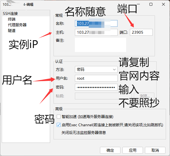租个云购买的云服务器IP地址,用户名,端口,密码